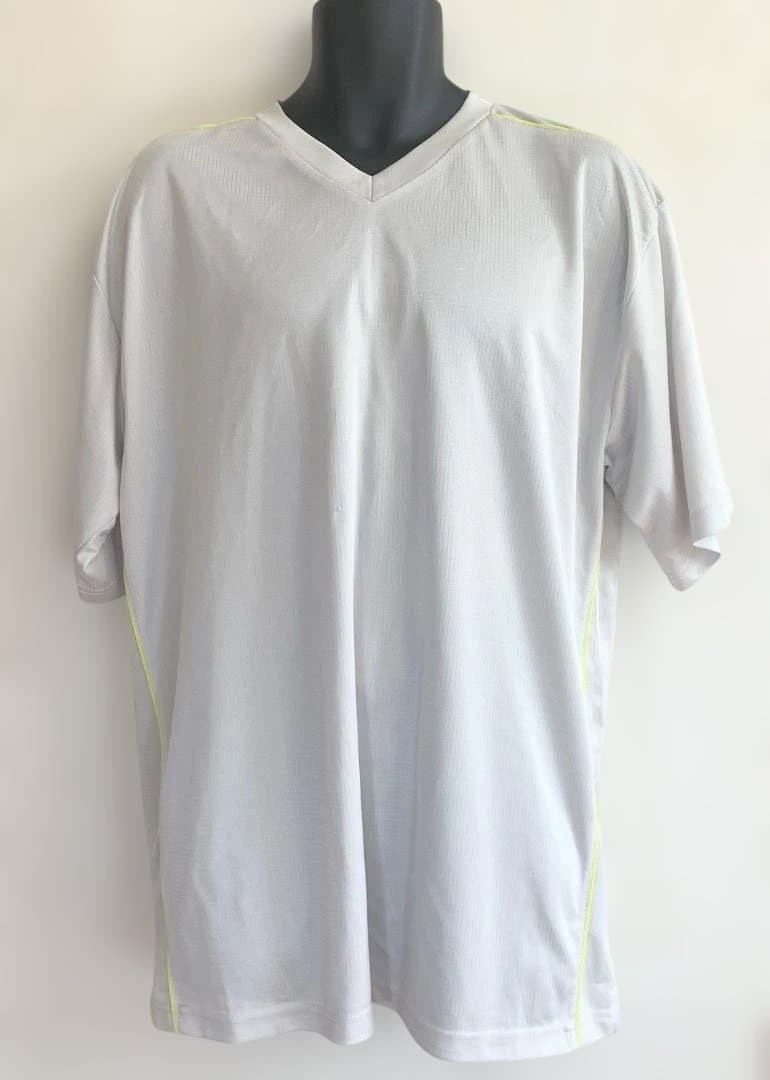 - 古着 ライトグレー Vネック Tシャツ 蛍光ライン 5L 大きいサイズ