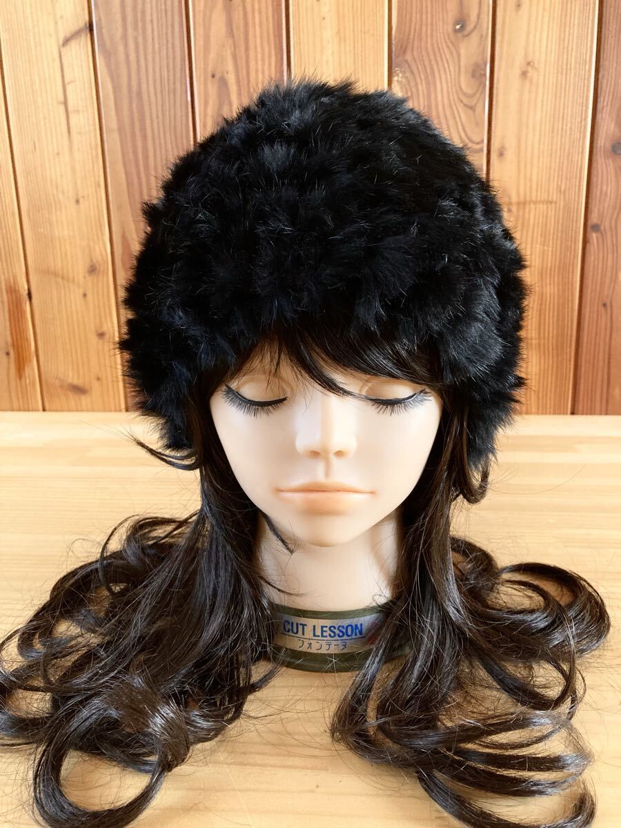 > ロフト ラビットファー ニット帽 黒 ブラック 帽子 ふわふわ もこもこ ロシア帽 ロシアン Rabbit fur knit hat cap Ushanka ④