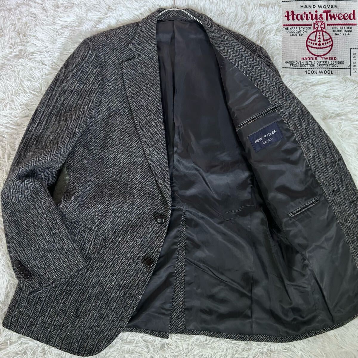 - 【希少!XLサイズ相当】NEW YORKER×Harris Tweed ニューヨーカー ハリスツイード テーラードジャケット ヘリンボーン くるみボタン 96A7