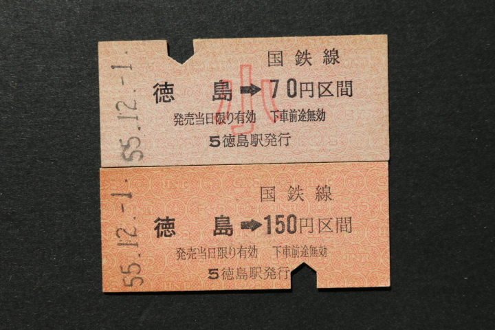 - 乗車券 徳島→150円区間 大人小児券2枚セット