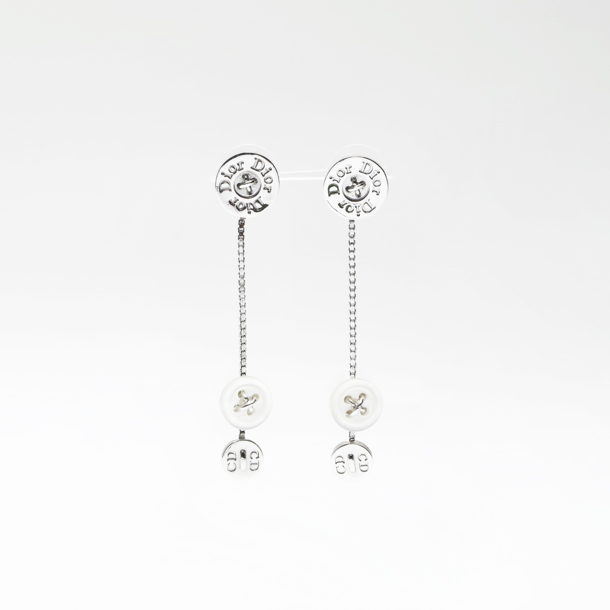- クリスチャンディオール Christian Dior ピアス ボタン モチーフ ドロップ シルバー