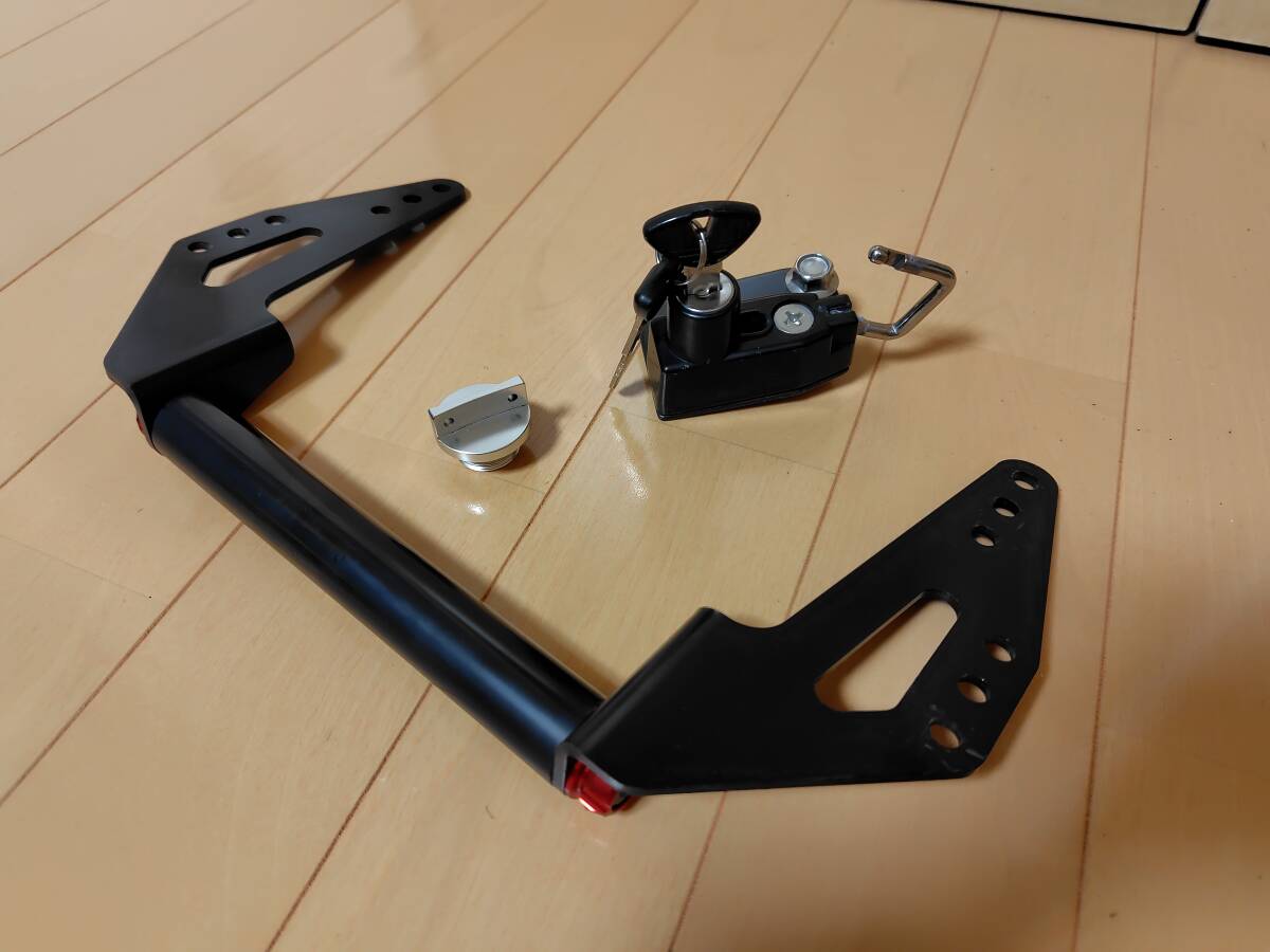- 【中古】Vストローム1000・XT(2017~)スクリーンマウントバー ・オイルフィラーキャップ・ヘルメットロック・ナックルガードL側