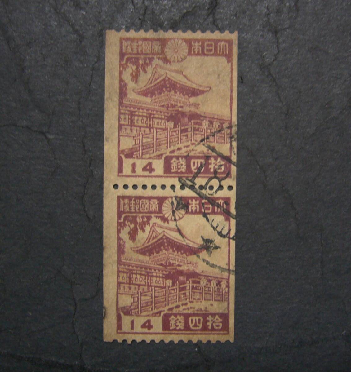 - 【珍品③!】1次昭和「14銭(春日大社)コイル 2連」使用済