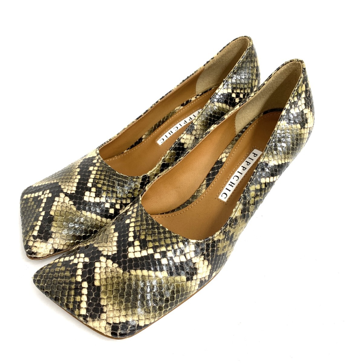 - 未使用品◆Pippichic ピッピシック スクエアトゥパンプス 表記サイズ:36 1/2 パイソン マルチカラー/グリーン レディース