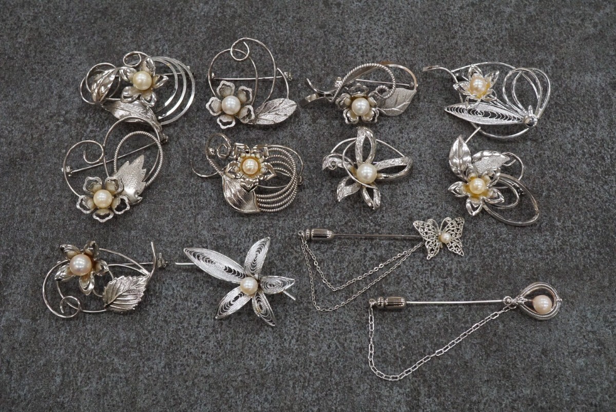 - C774 全てアコヤ真珠 本真珠 ブローチ 12点セット パール アクセサリー ヴィンテージ 大量 まとめて おまとめ まとめ売り 装飾品