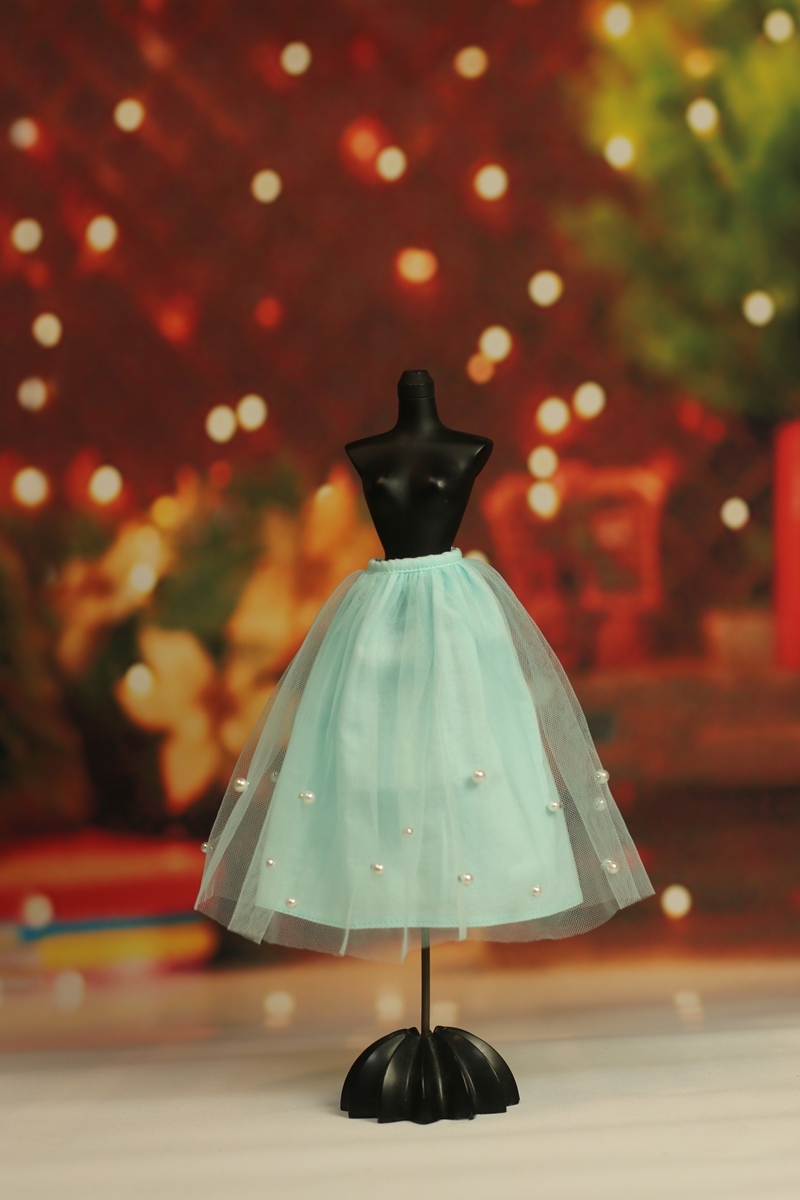 - 人形服S112-011青磁色チュールビーズスカートmomoko、ジェニー、OBITSUボディ、MISAKI、ピュアニーモ