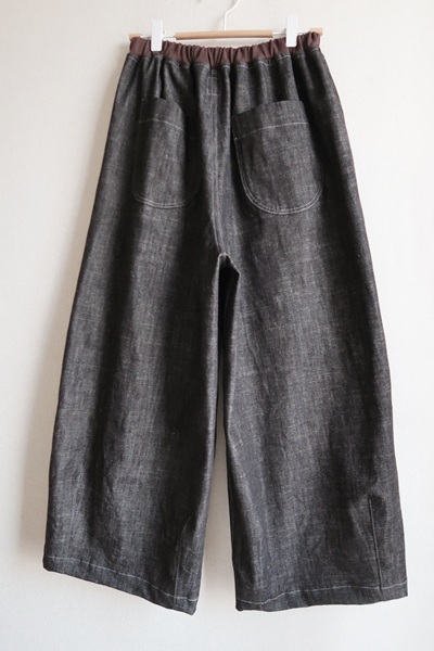- ハンドメイドY ストレッチデニム・ワイドパンツ(丈90裾幅29) ナチュラル服