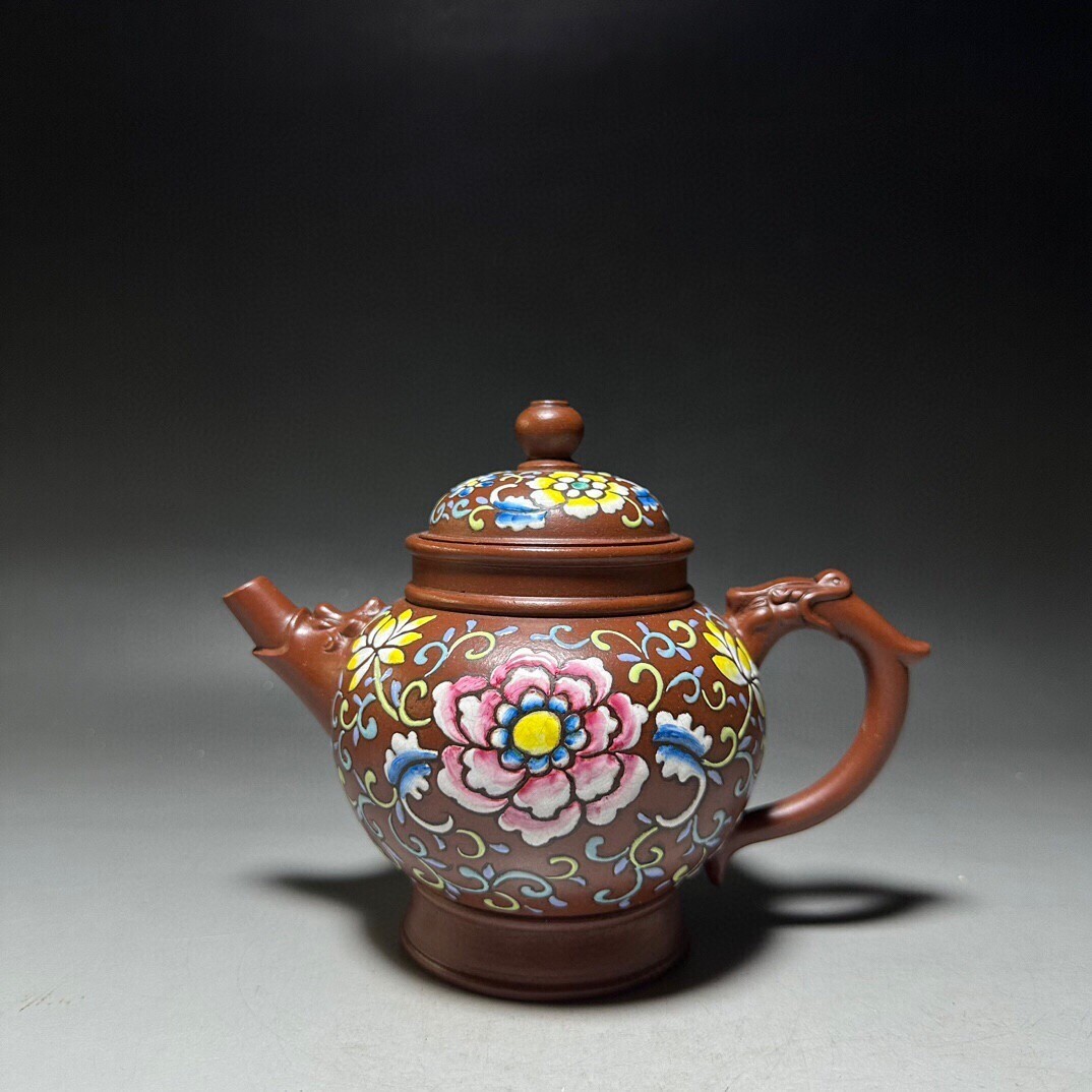 - 永し 旧家蔵出 龍紋印 品名【琺瑯彩 雙龍壺】朱泥 段泥 煎茶道具 急須 単孔口 唐物 紫砂壺 紫砂壷 茶壷 茶壷 極細工 古美術品 中国唐物