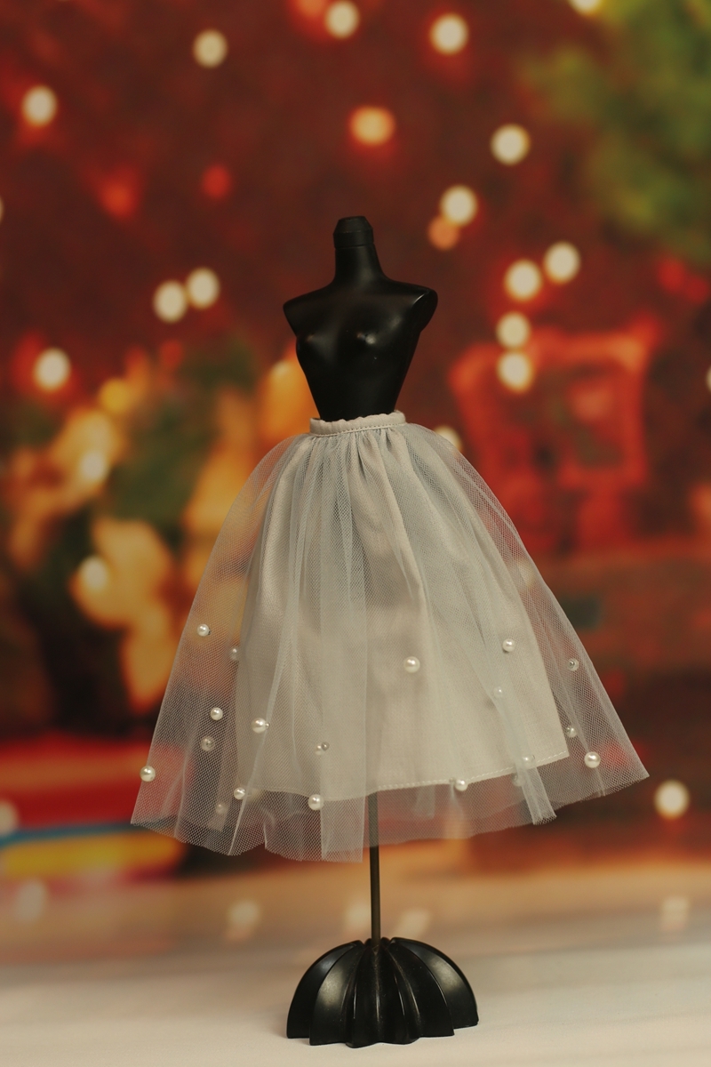 > 人形服S112-013薄グレーチュールビーズスカートmomoko、ジェニー、OBITSUボディ、MISAKI、ピュアニーモ