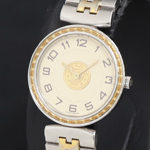 > 1円 稼働 QZ 良品 エルメス セリエ 207311 アイボリー文字盤 レディース腕時計 0024200 10MGT KRK