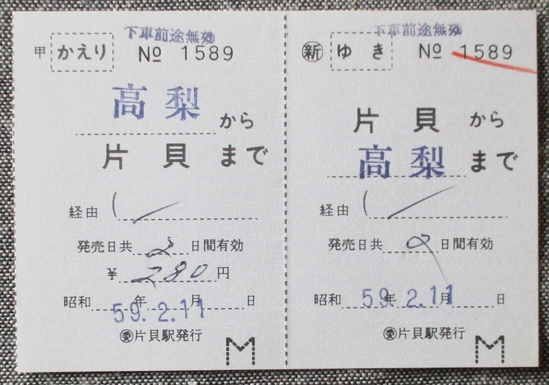 - 国鉄/新潟 魚沼線 (委)片貝駅 補充往復乗車券(軟券) 片貝→高梨