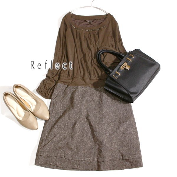 - 美品 REFLECT リフレクト ブレード付き ジャージー切り替え ウール ライトツイード ワンピース 9号 M 秋 合服 25C10