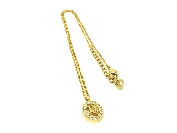 - 1円 ■美品■ ChristianDior クリスチャンディオール ヴィンテージ ラインストーン ネックレス アクセサリー ゴールド系 FP8378