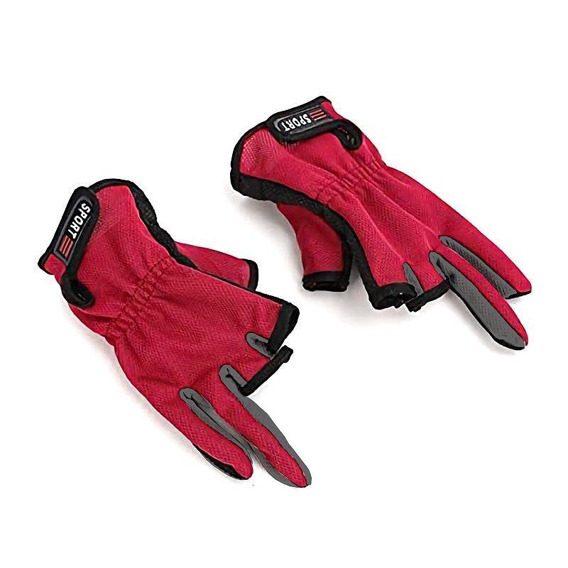 - 送料無料! 釣り用 手袋 レッド 三本指出し 滑り止め 汗吸収 レジャー スポーツ フィッシング 釣り 指先 3本 手 グローブ 作業 針 魚 海