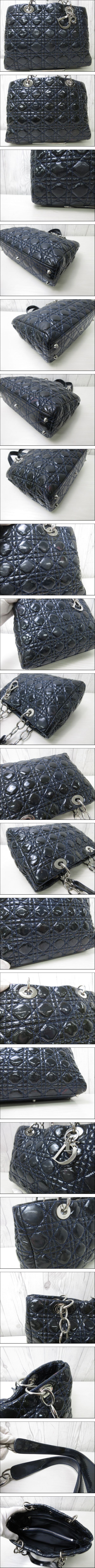- 美品 Christian Dior クリスチャンディオール レディディオール カナージュ ハンドバッグ バッグ パテントレザー 紺 91464Y