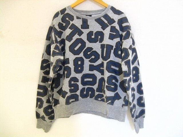> STUSSY / ステューシー 総柄ロゴ スエット トレーナー 長袖 レディース サイズ : S グレー