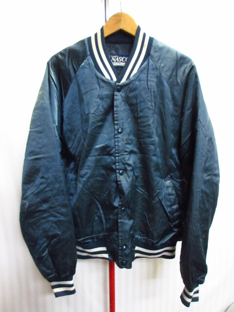 > USA製 NASCO 90sヴィンテージ スタジャン メンズXL LL 紺白 中綿スタジアムジャンパー 保温防寒ナイロン地コーチジャケット 10282