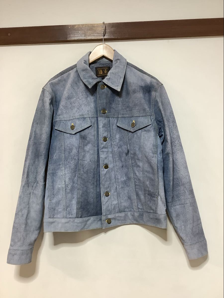 - つ1771 ABOK アボック レザージャケット ジージャンタイプ L 3rdタイプ レザーブルゾン インディゴ デニム風レザー 洗えるレザー 牛革