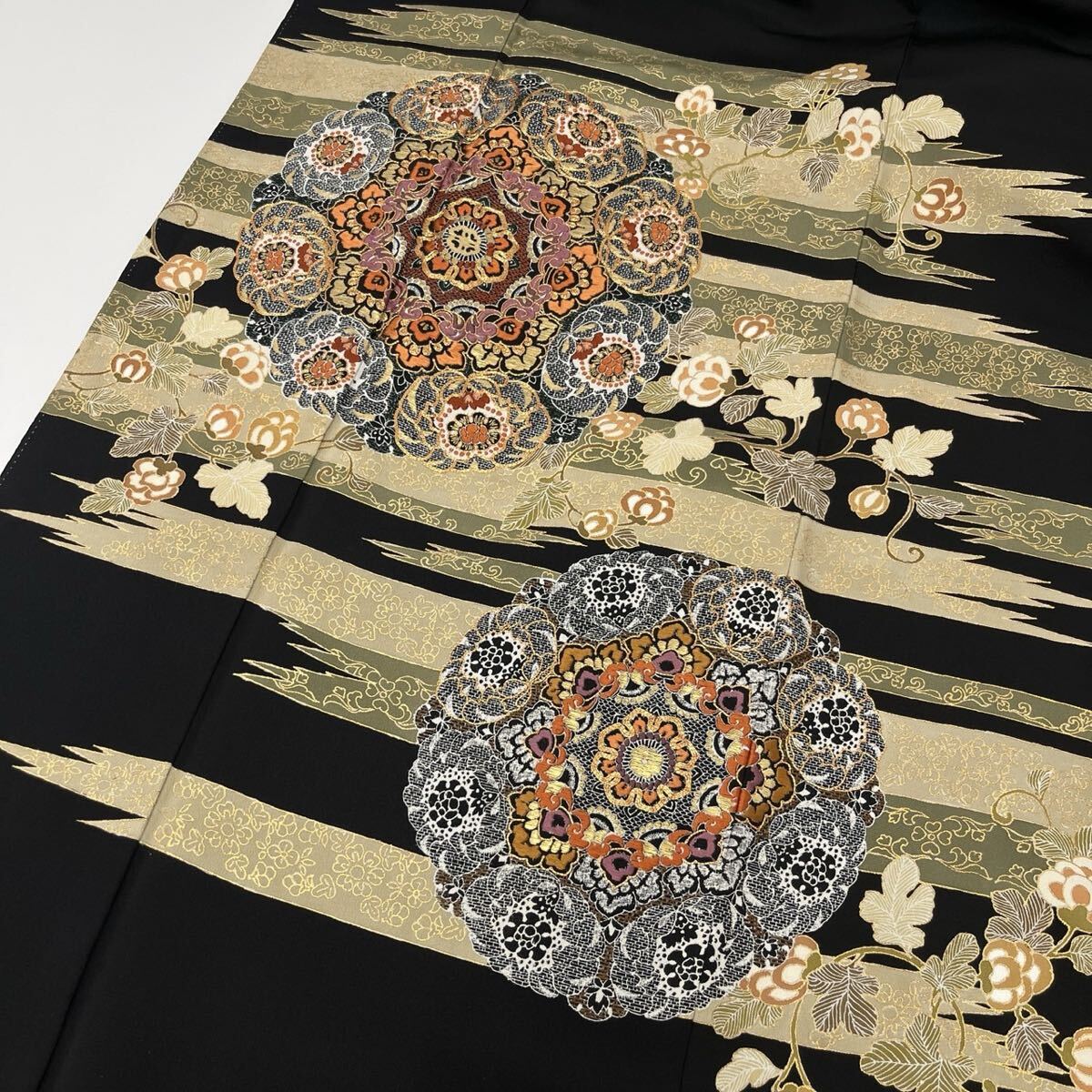 - 黒留袖 圧巻の豪華刺繍 正倉院模様 着物 正絹 五つ紋 F-882