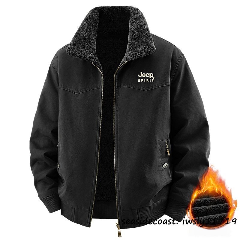 - 新作*ジャケット 秋冬 ブルゾン 裏フリース 防寒 厚手 防風 暖かい ムートンコート両面着 リバーシブル 作業着 ジャンパー ブラック L