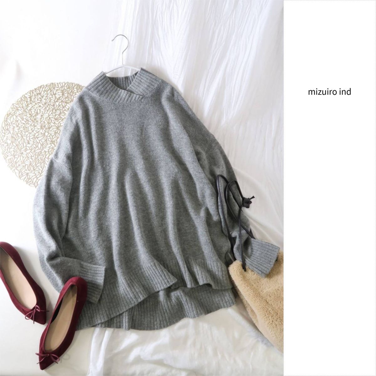 - ミズイロインド mizuiro ind☆クロスデザインハイネック ワイドシルエットニット☆M-B 6288