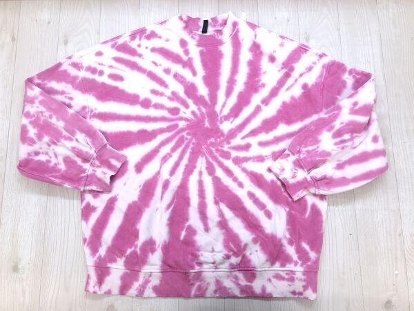 - H&M エイチアンドエム サーフ エスニック ヒッピー アメカジ 古着 タイダイ 絞り染め 無地 スウェット トレーナー メンズ 裏起毛 ピンク