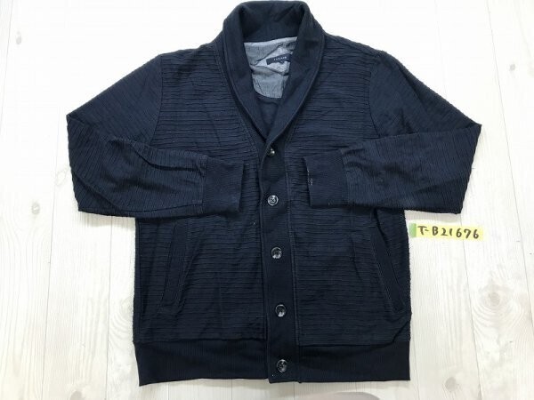 - TAKA-Q タカキュー メンズ 立体ボーダー コットンミックス カーディガン L ネイビー