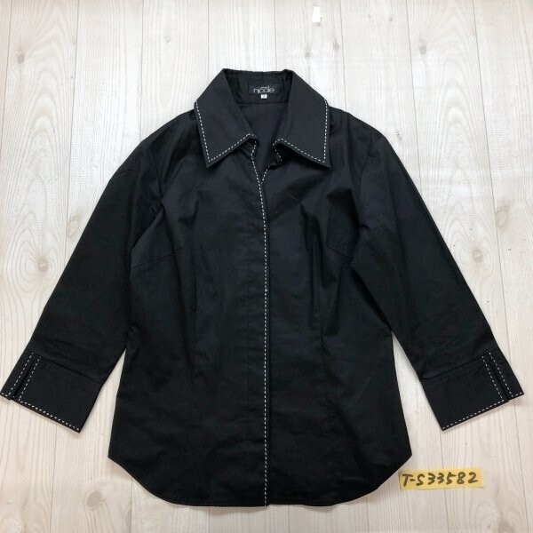 > NICOLE ニコル レディース 比翼ボタン ステッチデザイン オープンカラー 七分袖シャツ 38 黒