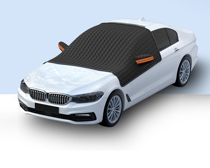 - フロントガラス 凍結防止 カバー フロントウインドウ 冬 雪 霜 視界 安全 簡単 車用 汎用 車中泊 ブラック