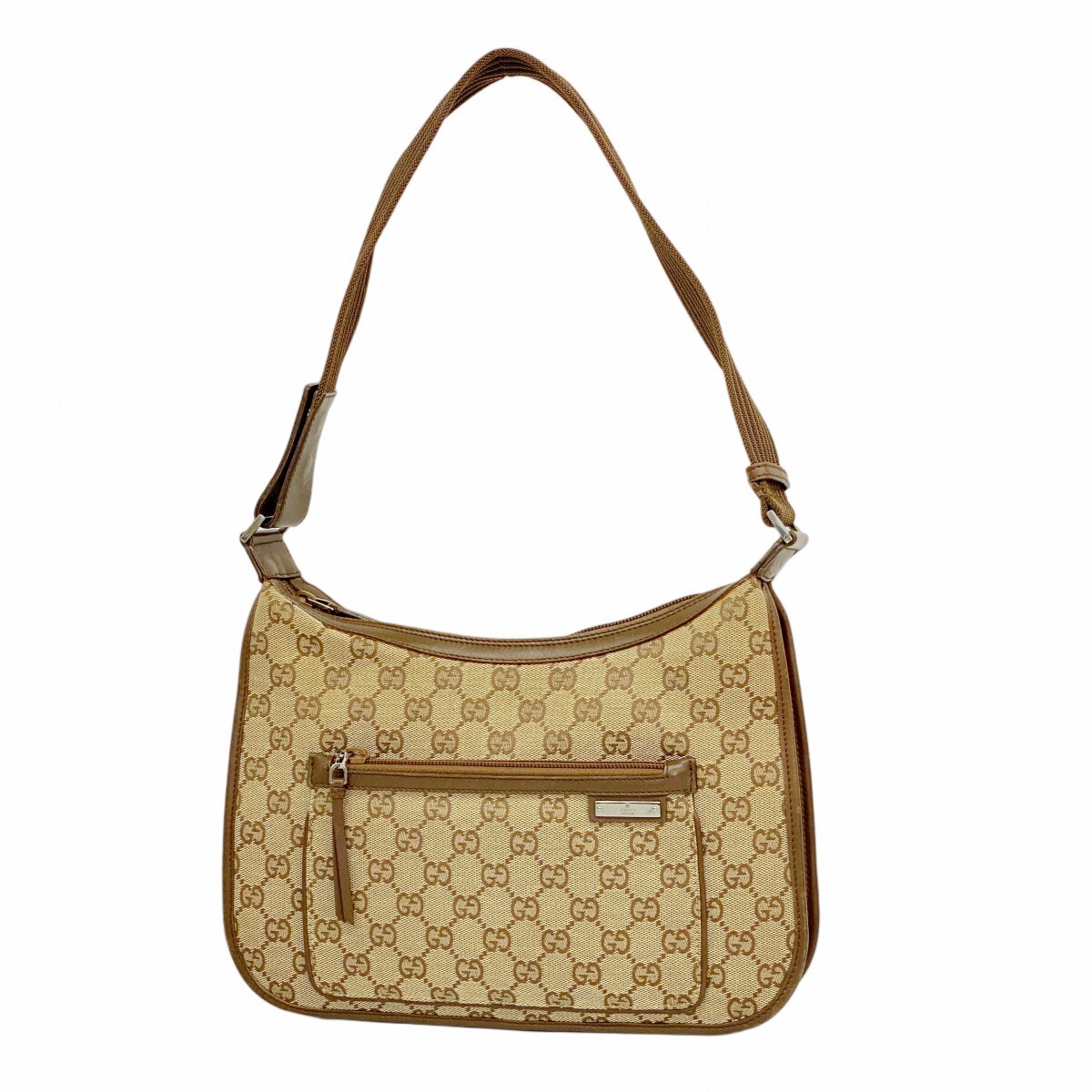 - 【5me6113】グッチ ショルダーバッグ GGキャンバス 001 4198 キャンバス ブラウン シルバー金具【中古】レディース
