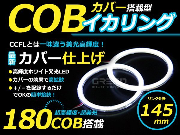 - LED増量タイプ! COB イカリング 145mm 180連 2個セット ホワイト LED 電球 丸型 ライト ランプ 交換 ドレスアップ カスタム