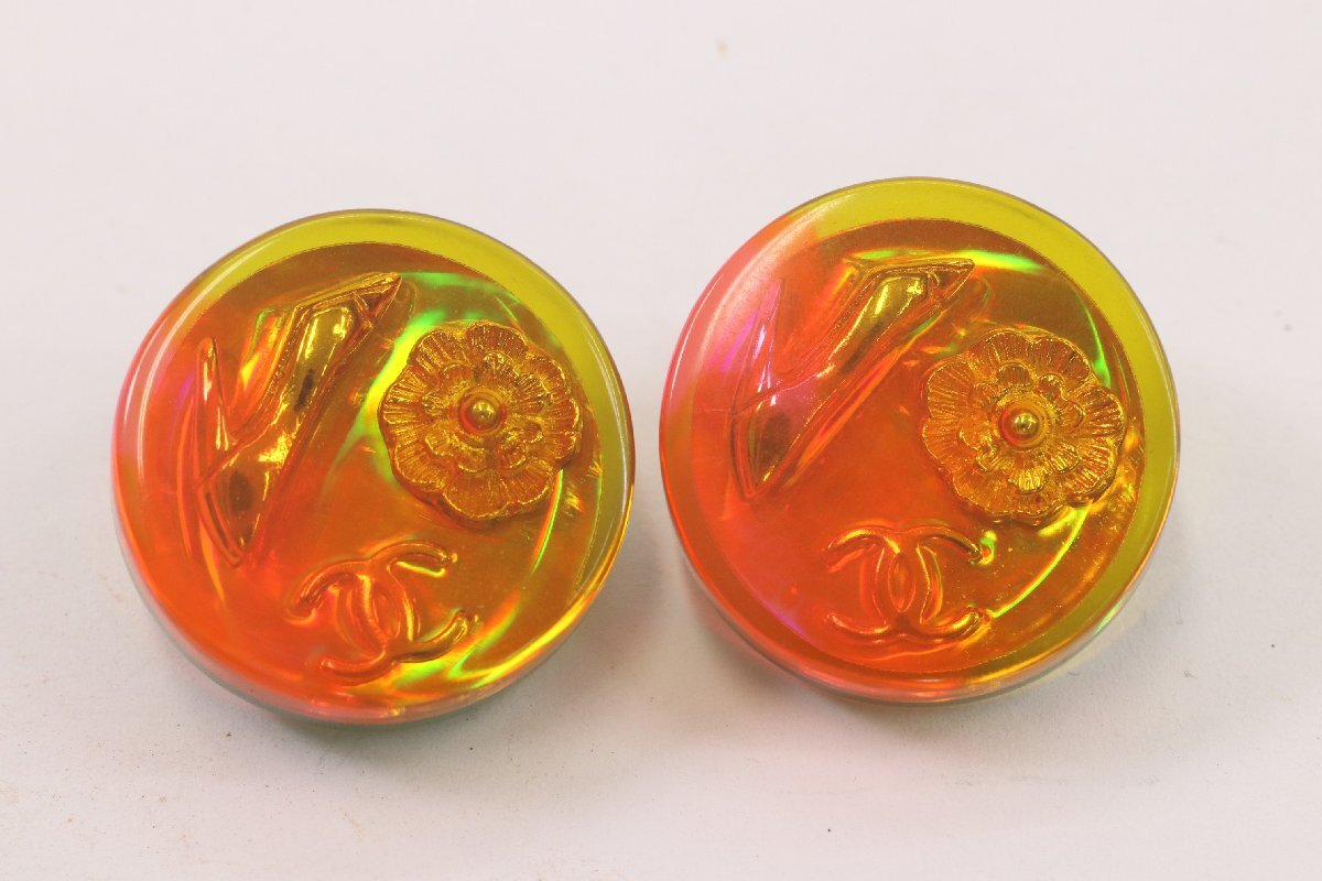 > CHANEL シャネル 97A カメリア ココマーク ハイヒール イヤリング ゴールドカラー ヴィンテージ アクセサリー 3790-K