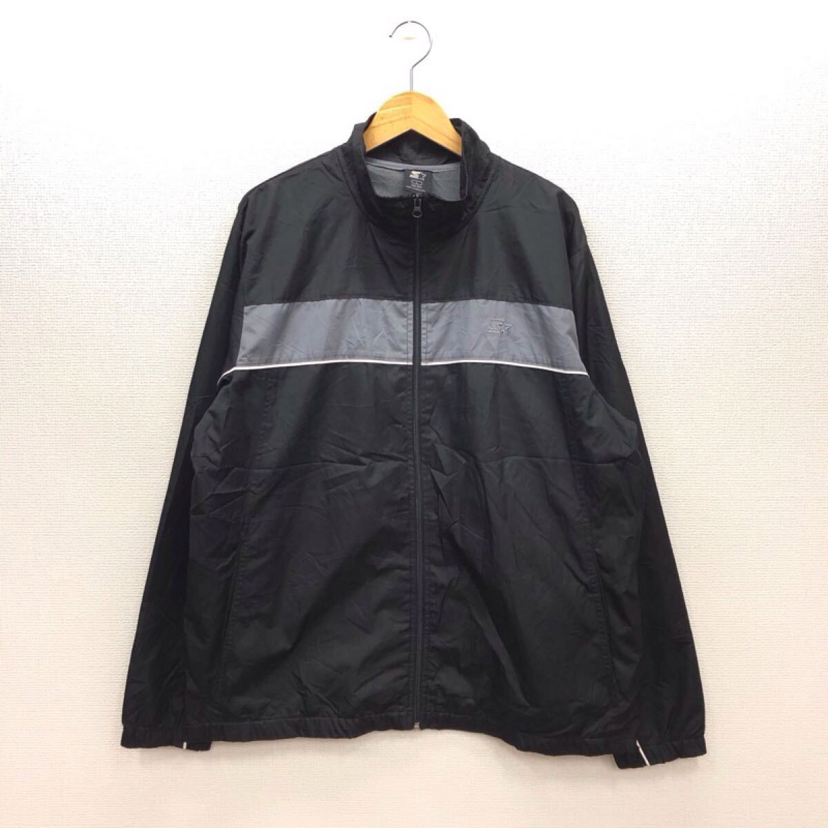 > 【GK018】STARTER Lサイズ ウィンドブレーカー ブラック 袖口ゴム 刺繍ロゴ ブランド古着 スターター スポーツウェア 送料無料