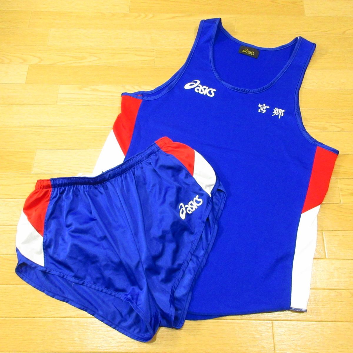 - ◎宮郷 陸上 asics アシックス M 上下セット セットアップ ユニフォーム ランシャツ ランパン 支給品 実使用 メンズ 青◆BA3871