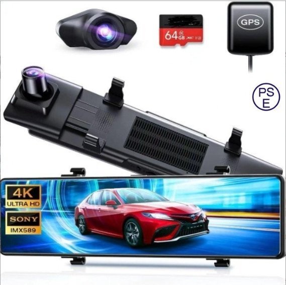 - ワイヤレスCarplay/AndroidAuto対応12インチIPS液晶画面 ミラー型ドライブレコーダー ポータブルナビカーナビ機能 2カメラ録画 音楽対応
