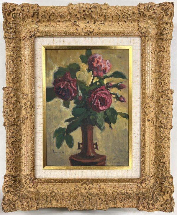 > 【FCP】 真作保証 中村善策 板に油彩画4号 「アイヌ土器の薔薇」 1937年作 日本芸術院賞受賞 日展常任理事 一水会 勲四等旭日小綬章 k
