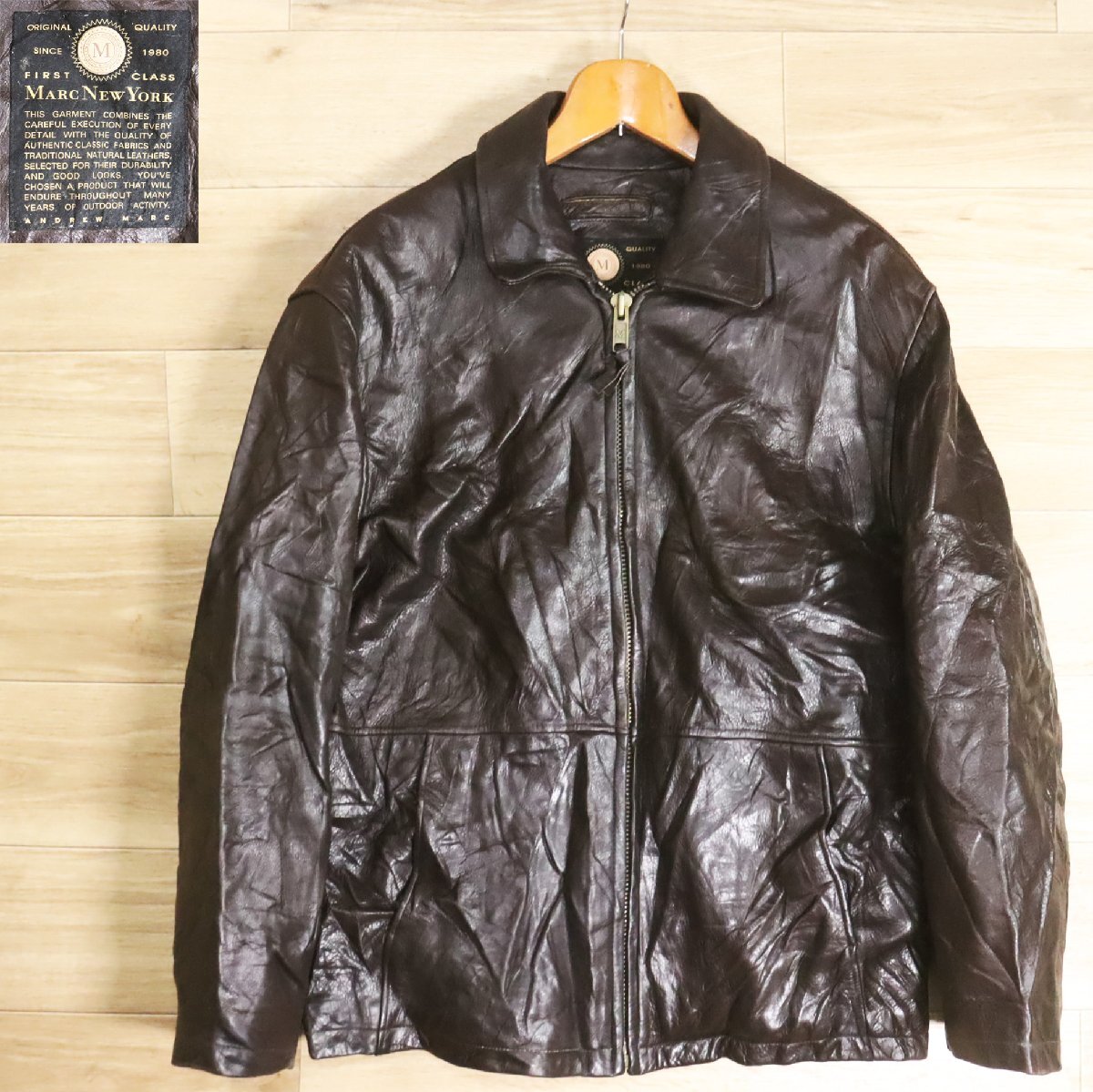 - =4O/Y5.9-1 アメリカ古着 MARC NEWYORK シングルライダース 本革 革ジャン 皮ジャン レザージャケット メンズ M ブラウン系