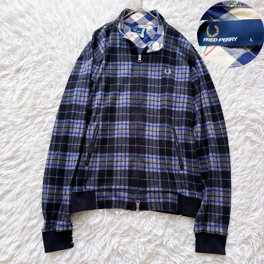 > FRED PERRY フレッドペリー チェック柄 ドライバーズジャケット ブルゾン Lサイズ ネイビー スタンドカラー トラックジャケット スポーツ