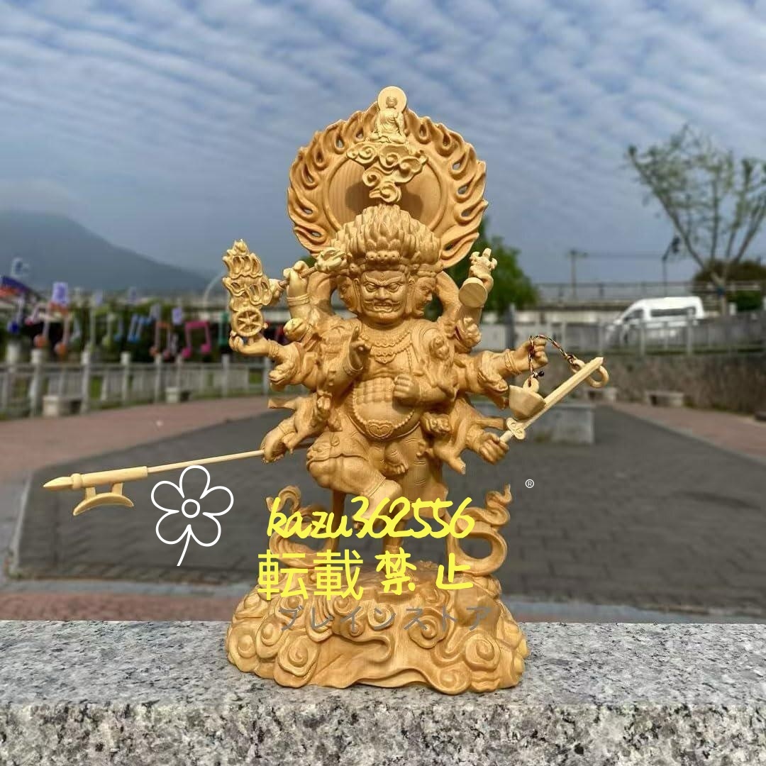 - 木彫りの仏像 【烏枢沙摩明王立像(うすさまみょうおう)】 桧木(ヒノキ) 総高23cm 密教 トイレの神様 火神