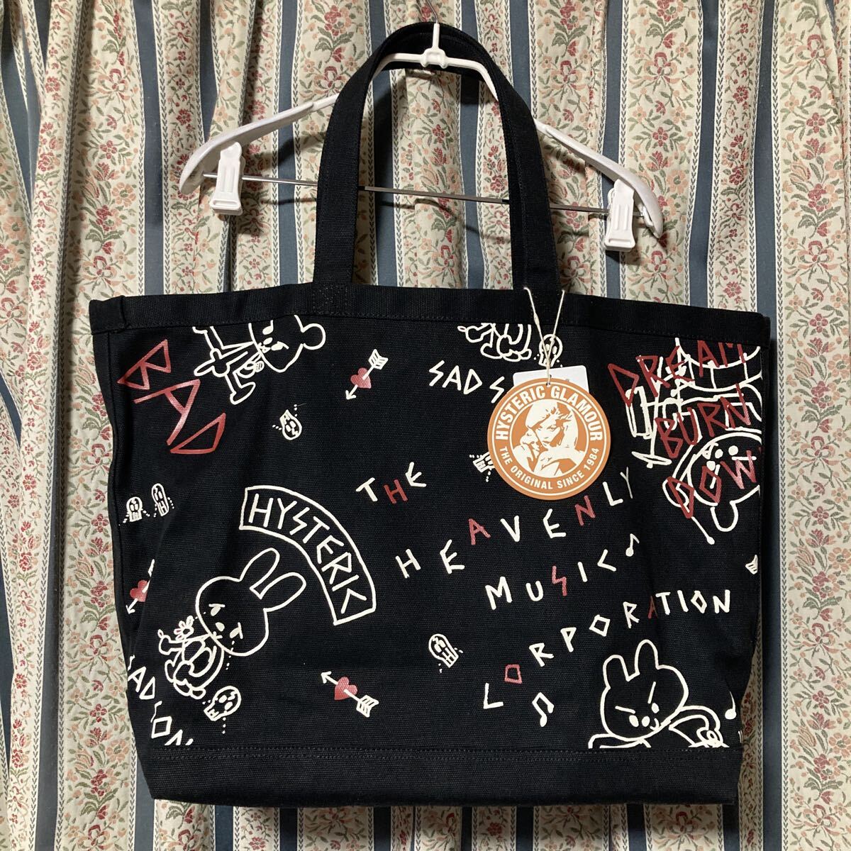 - 新品 ヒステリックグラマー Rain song キャンバス トートバッグ 落書き柄 黒 ビッグトート ブラック BEN & LUCY