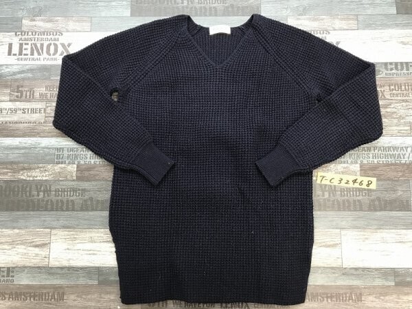 - PLST プラステ レディース ラグラン サイドスリット Vネック ワッフルセーター M ネイビー