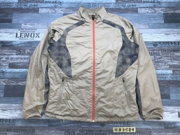 > ADIDAS アディダス メンズ 防寒 背中微起毛 ポリエステル ジップジャケット ウインドブレイカー S グレーカーキ