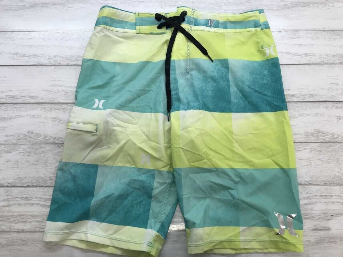 - ハーレー Hurley 平成レトロ アメカジ サーフ ストリート グラデーション 太ボーダー ハーフ ショート スイムパンツ 水着 メンズ M 黄緑
