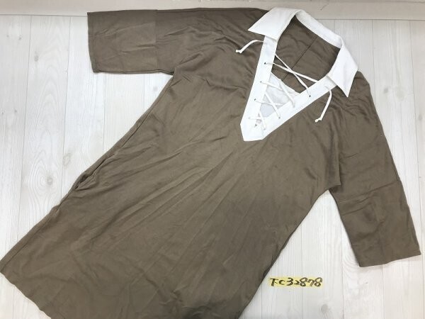 > synchro crossings シンクロ クロッシングズ レディース 日本製 七分袖 Vネック レースアップワンピース 38 茶色