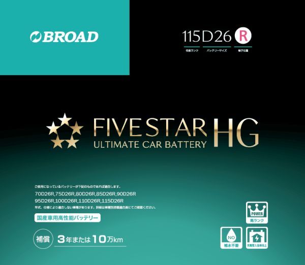 - 115D26R FIVESTARHG ファイブスターHG セミシールドメンテナンスフリーバッテリー 送料無料(沖縄・離島・北海道は除く)