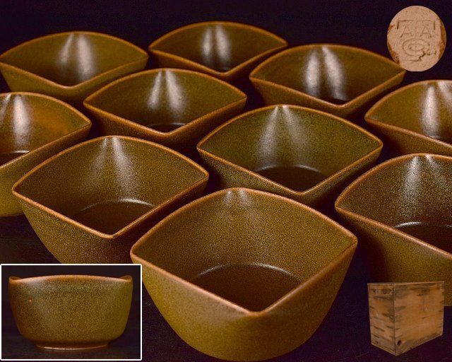 T135 【泉美】蕎麦釉薬 向付 10客 小鉢 懐石道具 木箱入拍卖