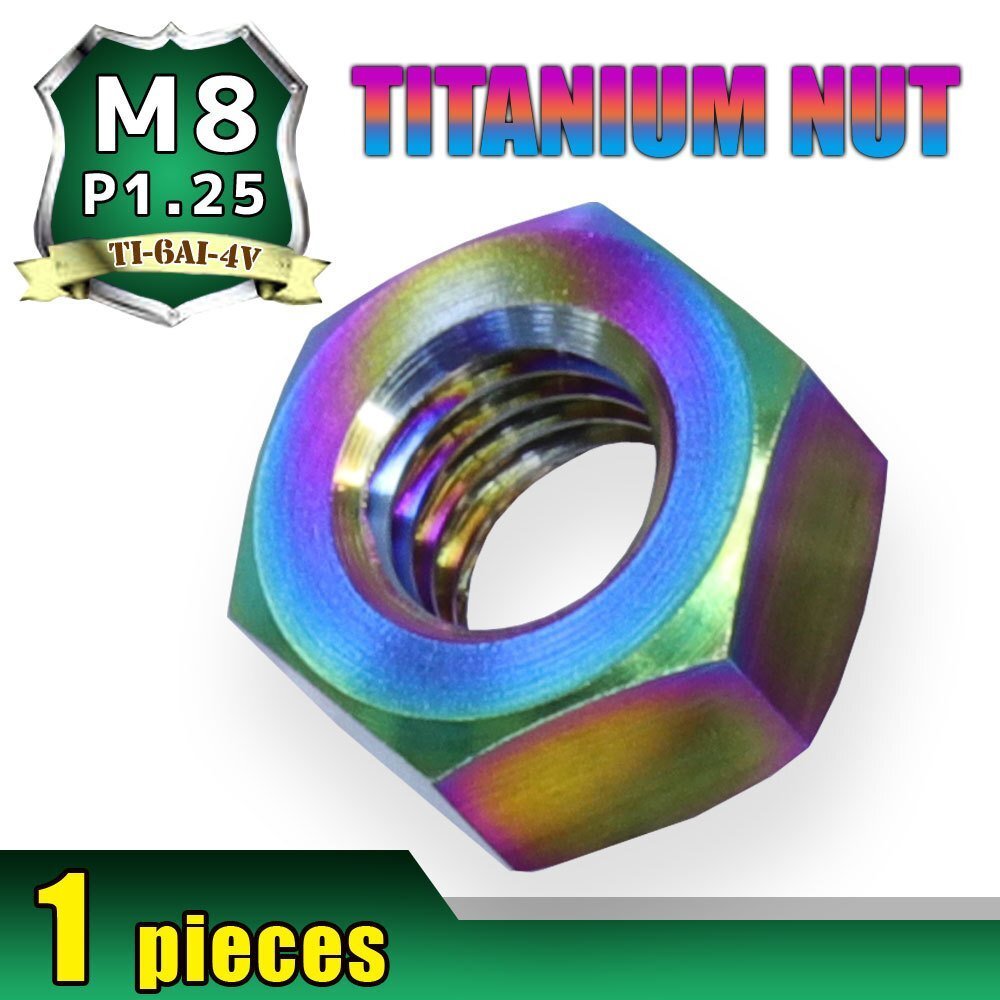 メール便OK!M8 P1.25 チタンナット 六角ナット 1個 焼き色 8mm ピッチ1.25 13mmソケット バイク 車 自転車 カスタム 軽量化 交換 MTB MBX