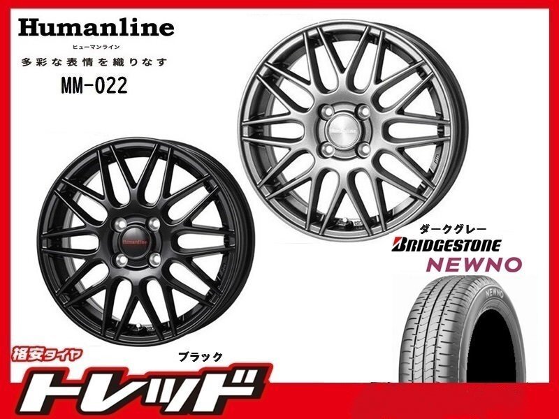 > (数量限定 2023年製)新横浜師岡店 新サマータイヤアルミ4本set ヒューマンライン MM-022 15インチ5.5J4穴100+43 NEWNO 185/65R15