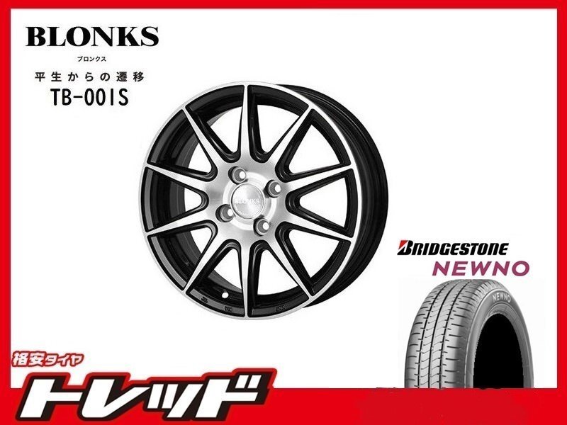 - (数量限定 2023年製)新横浜師岡店 新サマータイヤアルミ4本set ブロンクス TB-001S 14インチ5.5J4穴100+38 NEWNO 165/70R14