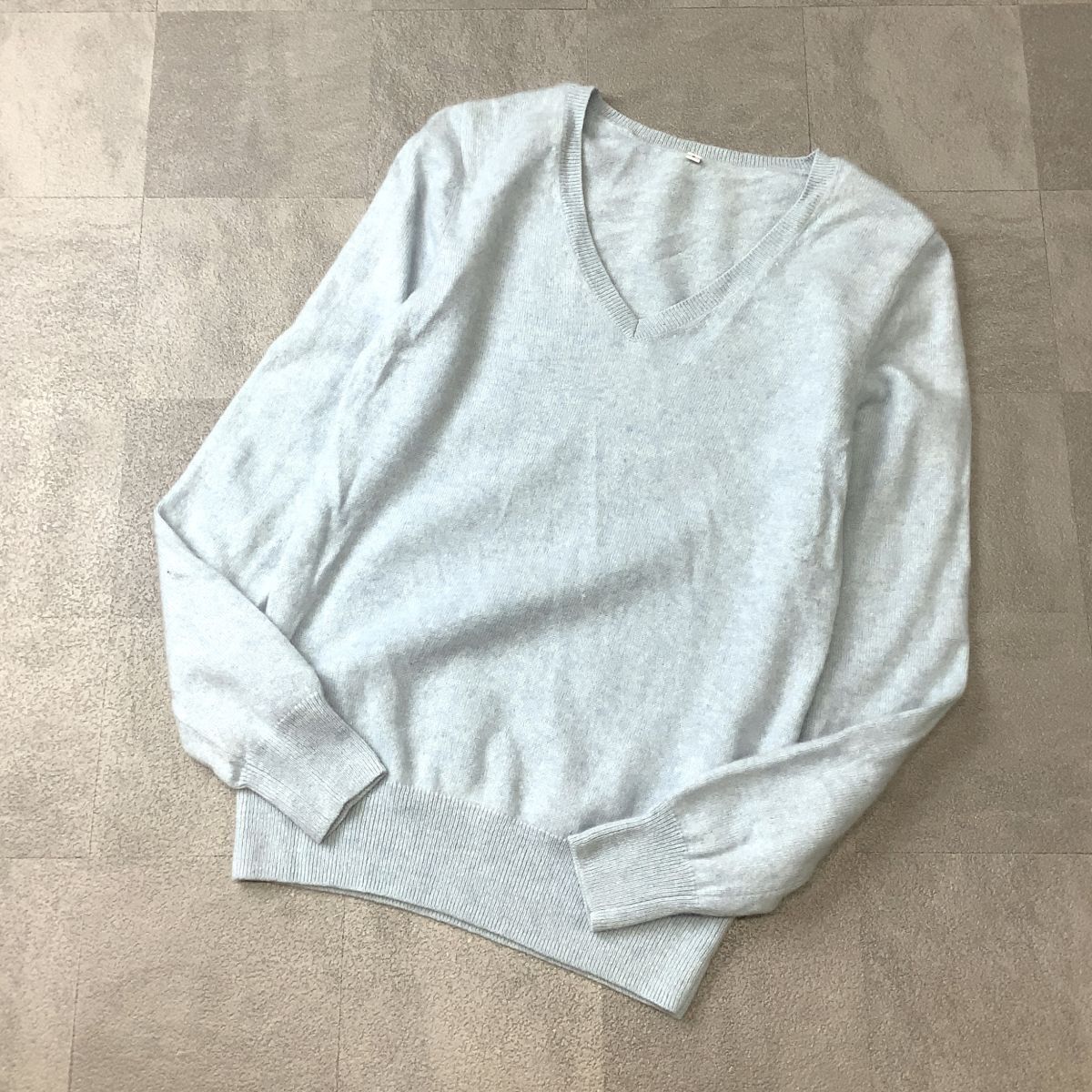 - 【高級感溢れるカシミヤ 100%】MUJI 無印良品 vネック カシミアニット セーター レディース Sサイズ ライトブルー 滑らか着心地